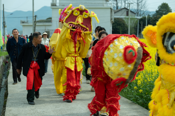 刘新汉与舞狮队 周学峰 摄