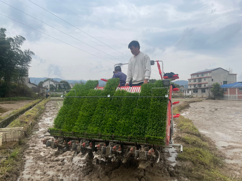 春回大地,气温逐渐回升,早稻秧苗生长成熟,我县种粮大户抢抓晴好天气开展插秧作业,确保全县23.8万亩早稻面积任务如期完成。