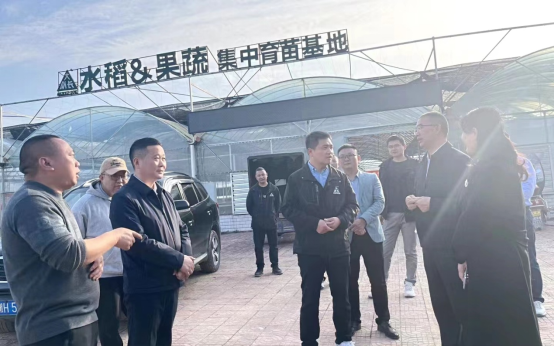 市、县相关领导在大队长农业修山项目基地调研集中育秧大棚扩建情况 龚治强 摄