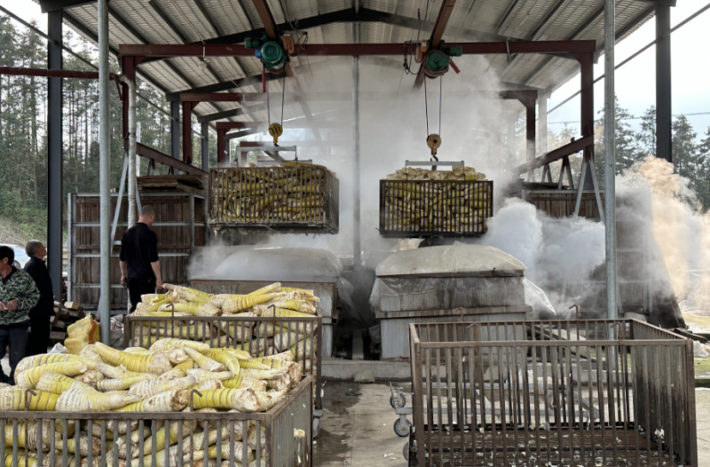 连日来,高桥镇石井头和石头坪两个村集体合作社开闸收笋,为村民们结算今年春笋收购的费用,锅炉和笋榨火力全开,夜以继日加班加点处理收购的鲜笋。