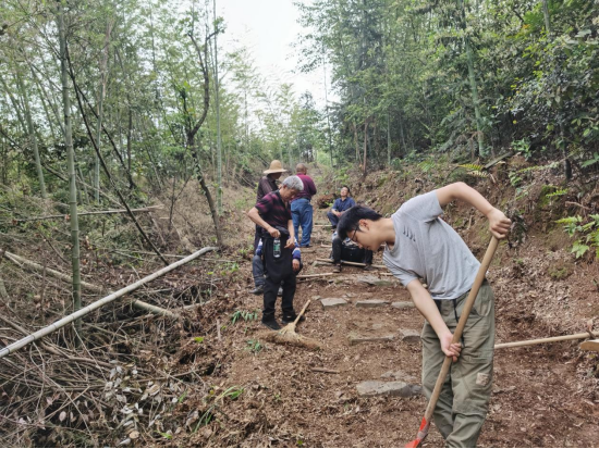 27日当天,该村35名党员、群众积极投工投劳,对长度3.5公里的青石板古道清扫、砍青、除杂、修复,修葺工程基本完成。