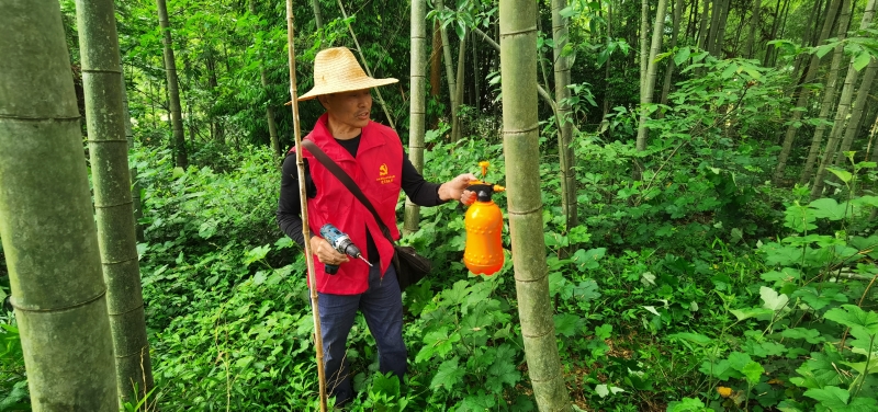 党员志愿者使用竹腔注射和喷雾方法开展防治 胡仕明 摄