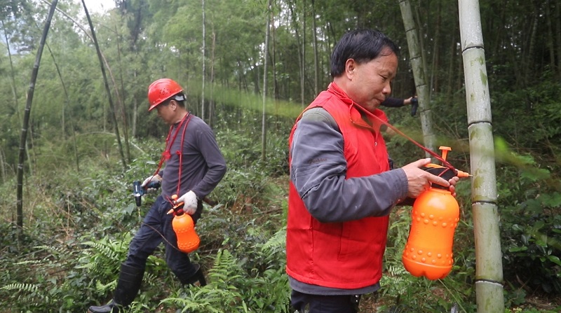 随着近期气温的攀升,马迹塘镇竹林里竹蝻纷纷出土。连日来,该镇技术人员通过使用杀虫双喷洒与竹腔注射双管齐下,将虫害消灭在萌芽状态。