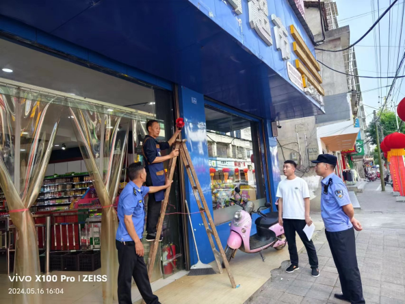 执法人员拆除超市违规噪声源 何思盼 摄