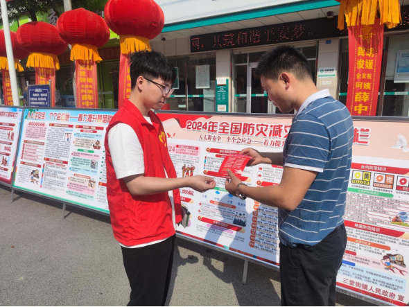 近日,三堂街镇组织相关部门工作人员在镇区开展防灾减灾主题宣传。