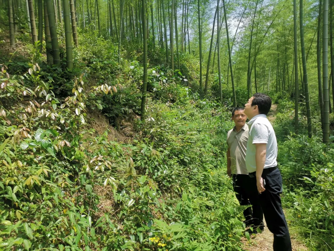 镇班子带队在各村查看竹蝗情况并部署无人机杀虫喷药作业工作 张石磊 摄