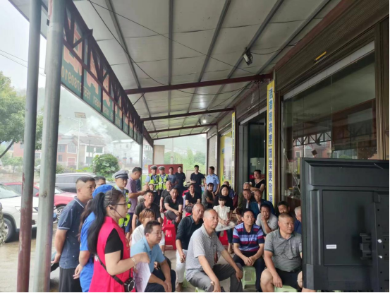 6月17日,鸬鹚渡镇长江村三个小组的屋场会热闹非凡,村民们围坐一堂,学习交通安全知识。