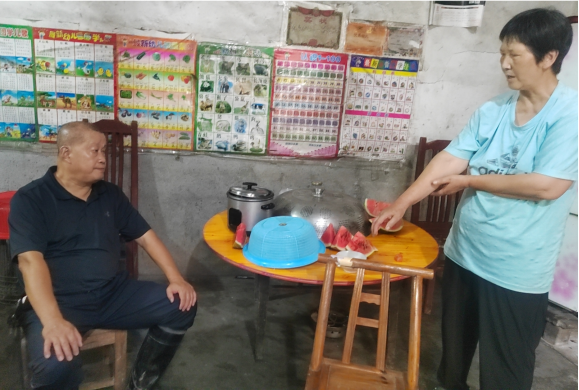 长田坊村村支书上门进行防汛避险宣传 胡锡凡 摄