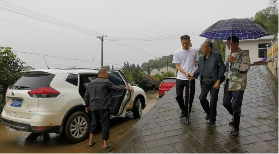 6月26日一大早,在大塘坪村伍房院组地质灾害点,当地镇村干部和驻村工作队员来到村民詹学才家查看。发现詹学才家的后山山体出现了裂痕,有垮塌的现象,必须马上转移。詹学才身患尿毒症,行动不便,隔天需要到当地医院透析。考虑到这个实际情况,马迹塘镇武装部长、宣传委员宋泽建立即与医院进行沟通,全家人得到了及时转移。“经过我们当场联系,当地医院愿意主动接受詹学才,在医院做短期居住,以方便他隔天进行透析,他的老伴和女儿则安排在亲戚家暂住。”
