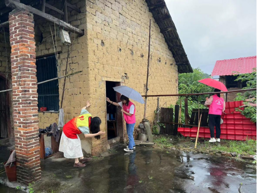 在滩口上村走访时,党员蔡尚佳等发现河水流速不快,便沿着河道进行排查,发现下游排水口被杂物阻塞,他立即到农户家中借来镰刀,砍去阻挡的杂草,清除围挡处的淤泥,确保溢洪道畅通。在滩口上村野猪冲水库,镇团委副书记高中鹏向水库周边住户刘某详细介绍水位标志牌,告知警戒水位,提醒他时刻关注水位情况,及时向村委报告。在大桥塘村,镇妇联主席吴昊到泥砖住户高某家中,询问其身体健康状况,仔细排查其房屋状况和床铺位置,并为其张贴紧急联系人姓名和电话,告知紧急转移点,嘱咐要时刻关注预警信息,床铺位置要“住前不住后,住上不住下”。