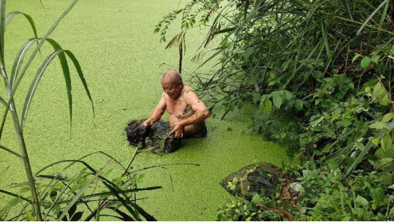 孙德良跳进水中开垸泄洪 欧宁 摄