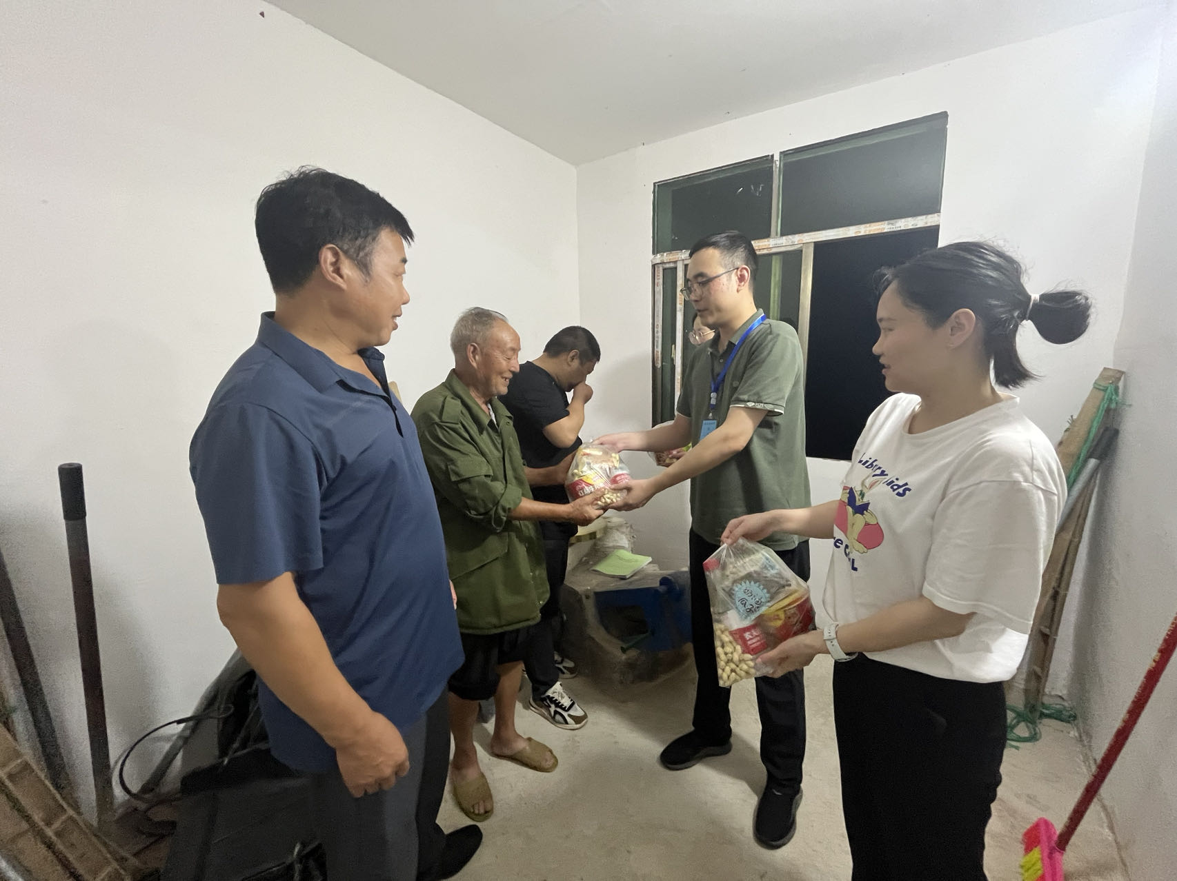 在伍家洲村温家冲水库,督查组看到值守人员胡健正全神贯注地观察着水位变化。胡健向督查组详细汇报了水库的防汛准备情况,表示将全力以赴,确保水库安全度汛。随后,督查组为胡健送上了慰问品,并叮嘱他要注意身体,合理安排作息时间。