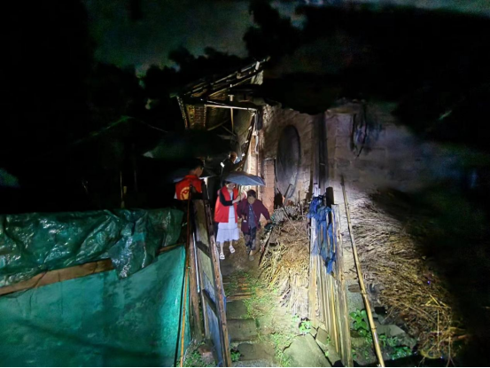 因受持续强降雨影响,部分地段发生山体滑坡,导致道路阻断,多栋民房也遭受了不同程度的垮塌与损坏。紧要关头,干部们挺身而出,迅速启动转移预案,组织群众按照既定路线有序撤离至安置点,毫不犹豫将行动不便的老人和儿童背到安全地带,耐心安抚群众情绪的同时,还帮助其搬运贵重物品及生活必需品,并提供食物、饮用水、床铺被褥等,用实际行动体现党和政府的关怀与温暖。