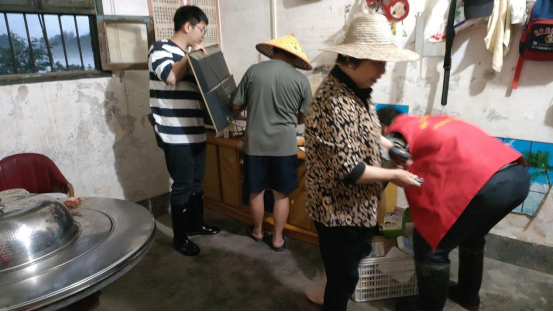 镇村干部上门帮群众转移 马迹塘镇 供图