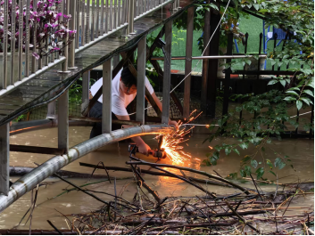 危机时分,牛田社区90后党员、退役军人李文福自告奋勇地提出他可以使用手持打磨机至便桥桥洞下拆除阻碍河道泄洪的横向钢管。考虑到水势的不确定性和下水的危险性,镇村两级防汛突击队并不同意他的请求。
