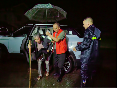 党员志愿者第一时间转移受灾群众 夏跃求 摄