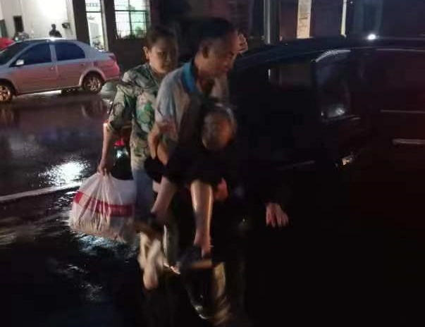 “沿江商铺的地下室、杨家坪村多个居民房屋马上要进水了,快来协助转移。”眼看着洪水即将灌入沿江居民房屋内,地势低洼区的房屋内水位没过小腿。就在这紧要关头,党员干部们纷纷迎洪而上,迅速卷起裤腿、蹚着洪水,边安抚群众情绪,边帮助群众收拾好生活必需品,大家一齐撑着雨伞、搀扶着老人、提上生活用品,顺利转移到安全区域。党员干部们在雨中来回奔波的“红色”身影在这雨夜下格外醒目。截至1日凌晨,武潭镇沿江9个村(社区)共成功转移95户238人。