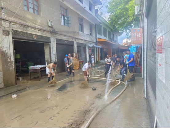 一边是干群齐心协力清理街道,另一边是群众不等不靠。当天,笔者在现场看到,鲊埠社区和陶公庙村的道路上都呈现一片忙碌的景象,沿路店铺的店主、店员都用扫帚清理淤泥,并将屋里清理出来的货物装上环卫车运走。一名正在打扫店铺的店主对恢复营业满怀信心:“全靠大家齐心协力,这条路清理干净后,我们就可以重新营业了。”