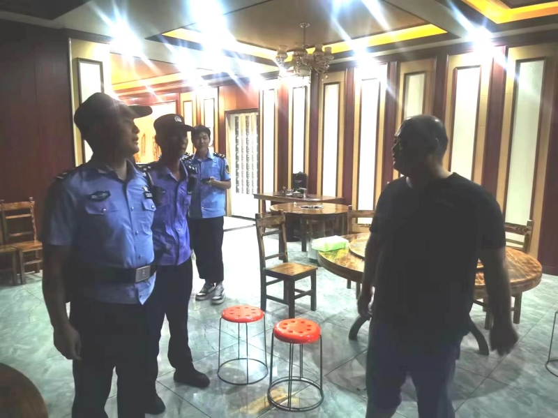7月22日晚,鲊埠回族乡多部门联合对辖区内宾馆等娱乐场所开展夜间联合检查。