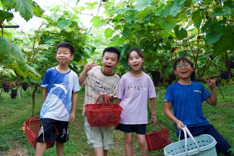 在果园内采摘葡萄的小朋友 薛海东 摄