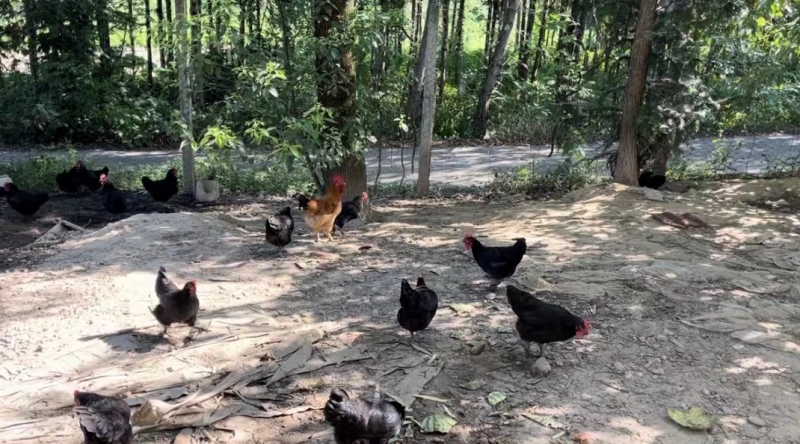 莲花农庄果园内养的土鸡 杨夏 摄