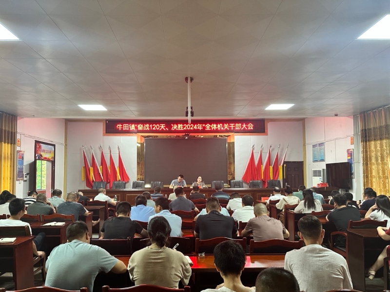 8月19日,牛田镇“奋战120天、决战2024年”全体机关干部会议召开。