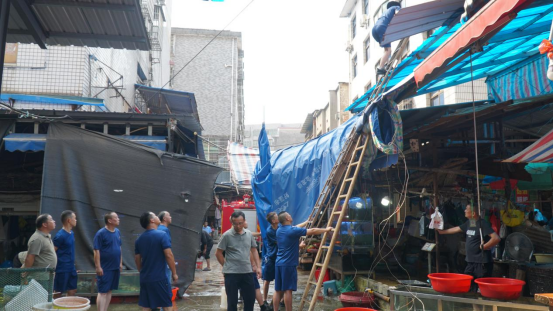 9月10日上午,灰山港镇应急管理办联合镇综合行政执法大队、消防站、市监所疏通集贸市场消防通道。
