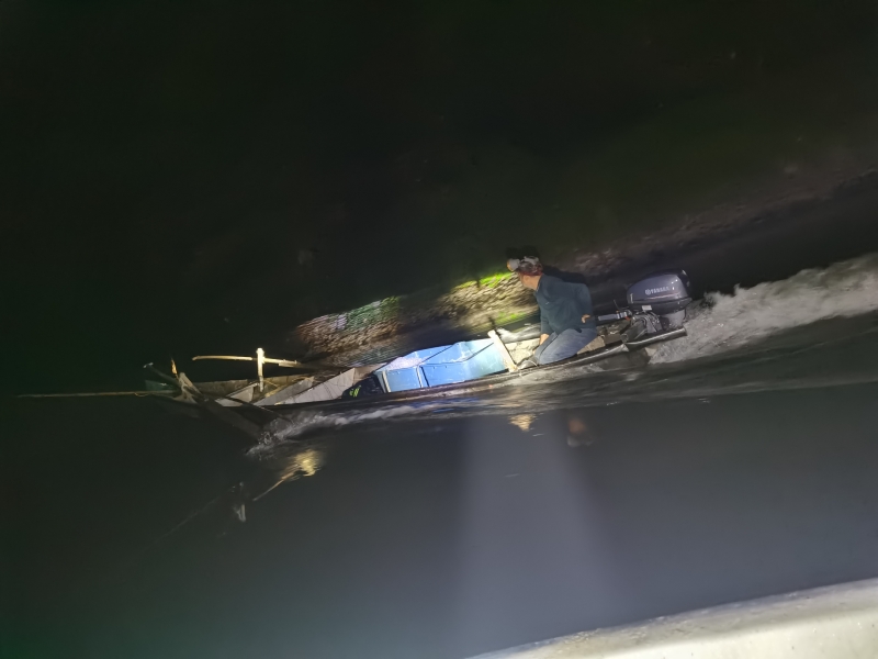 凌晨3点40分,执法人员经过两个小时的蹲守和严密监控,对非法电鱼者进行了抓捕,现场查获非法电鱼渔船1艘,电鱼装备1套。