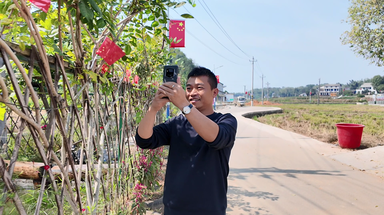 “今年我们乘着国庆黄金假,和家人、村民一起,用一天时间把我们的小山村全部刷上了‘中国红’,焕然一新地迎接国庆,表达我们农民的家国情怀。”正在村道整理国旗的省十四届人大代表、全国乡村科技致富带头人郭美华说道。