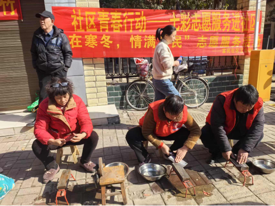 在舞台的周围,来自不同行业的志愿者开展了义诊、义剪、送春联、烟花爆竹禁放宣传等活动,在寒冬里将爱心传递。