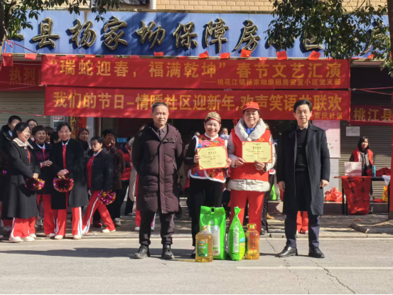 1月15日,桃花江镇富民社区杨家坳廉租房小区歌声飞扬,热闹非凡,一场主题为“瑞蛇迎春,福满乾坤”的春节文艺汇演在此精彩上演,吸引众多居民前来观看。