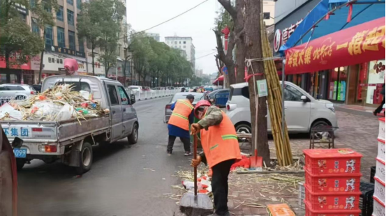 清扫堆积在路边的甘蔗皮 胡放权 摄