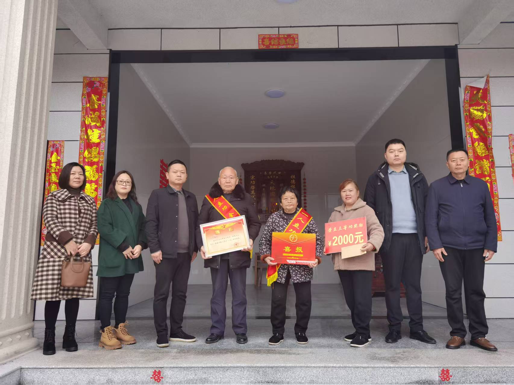 3月11日,武潭镇退役军人服务站联合镇武装部到石桥村,将喜报送到荣立三等功的现役军人莫逆的家中。
