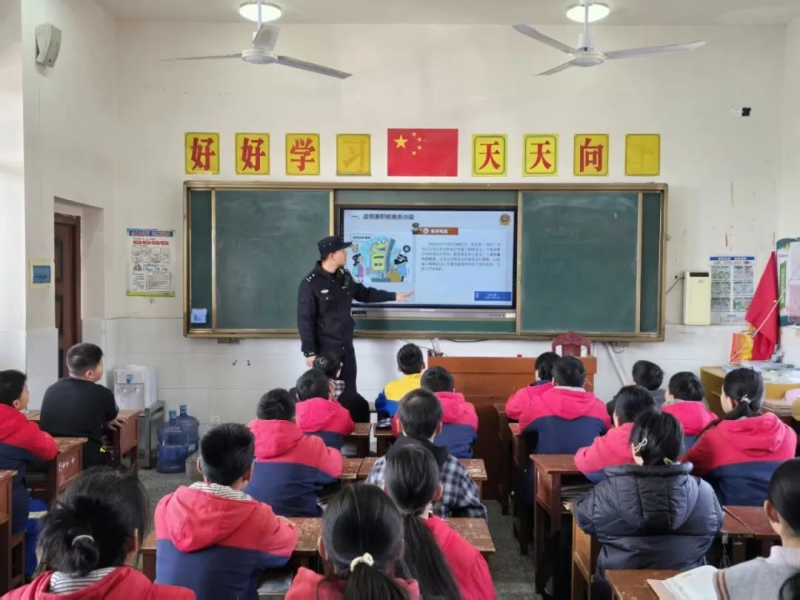 近日,县公安局马迹塘派出所走进马迹塘镇完全小学,为600余名师生送上一堂生动的反诈教育课。
