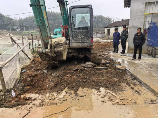 日前,桃花江镇通过卫星遥感监测发现这一耕地异常图斑,经核查,赵某未办理审批手续,擅自硬化永久基本农田建设私家地坪。该镇快速处置,通过政策宣讲,促使赵某主动配合拆除复耕。