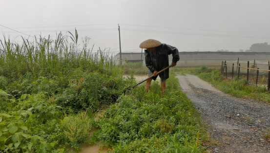 当天下午4时许,桃江县农夫良知水稻种植合作社理事长彭进财穿着雨衣,手拿锄头,冒着暴雨在田埂上开沟,将上游的雨水引导下游稻田。随后他又连忙赶往1公里以外的二斗冲水库,疏导积水山沟,将周边山溪水引入二斗冲水库,这座小二型水库是该村1000多亩稻田的灌溉用水,他所承包的800多稻田的水源全部来自这座水库。“这场雨下得好,雨的就是钱,因为早稻正是需要水的时候,(早稻)开始抽穗,一季稻也需要水,马上要翻耕了,所以说这是一场‘及时雨’。”彭进财开心地说。