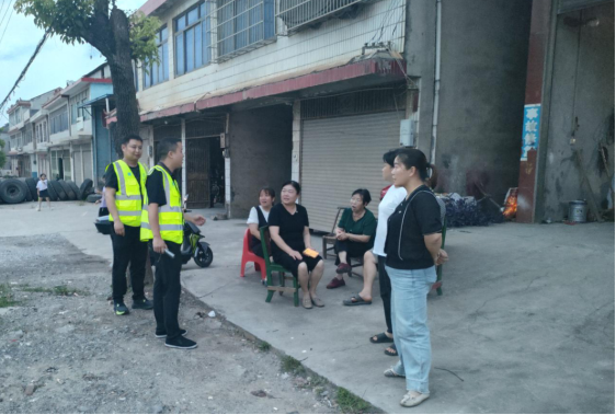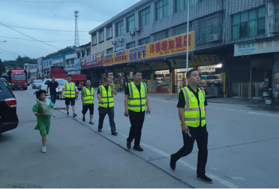 晚上7点,巡逻队员身穿统一的绿色反光马甲,五人一组整齐排列,从万功塘村村部出动。S223万功塘路段车流川流不息,这条连接灰山港和长沙宁乡的交通要道,每日约有4000台车辆穿行,承载着企业货物运输与群众日常出行的双重压力。巡逻队以辖区的洋婆塘集镇为核心,沿着S223深入万一、万二、龙一、龙二等村民组开展夜巡。巡逻队重点排查了道路交通安全隐患,并对违规驾驶、不规范佩戴安全头盔、路边临时乱停乱靠等行为及时进行劝导。同时,队员们兼顾人居环境整治、防溺水和森林防火等工作,将安全知识与政策宣传融入日常巡逻,与群众面对面沟通,切实增强群众的安全意识。