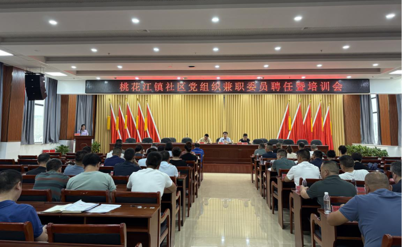 7月23日上午,桃花江镇党委召开社区党组织兼职委员聘任及培训会议,宣读聘任通知并开展履职培训,明确三方职责。