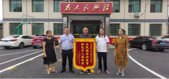 老人家属送锦旗感谢南山村“两委” 胡卫红 摄