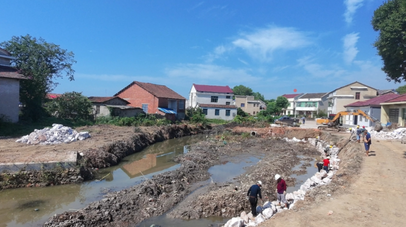 施工现场,人员设备协同作业,深挖清理塘底淤泥,拆除重建破损堤坝。大桥塘村村民郑颂红是义务劳动的一员,他说,每天都有不少村民自发前来帮忙,清淤、搬运材料,干劲十足。