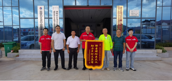 8月27日下午,武潭镇善溪村村民委员会专程将一面书写“解囊赠砼显大义 助力乡村见真情”的锦旗送至中国水电四局金塘冲项目部,感谢其无偿提供价值2万余元的混凝土材料,助力村级道路修复。