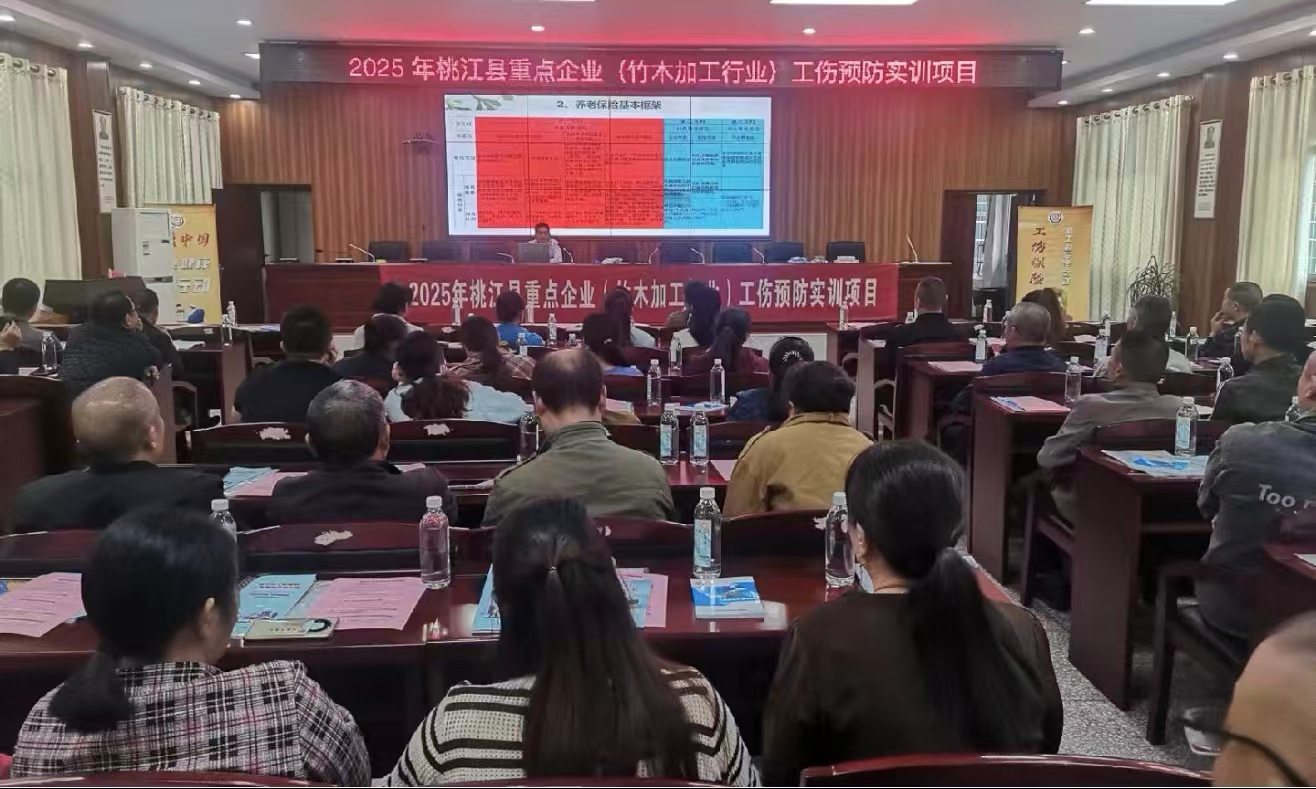 9月25日下午,桃江县重点企业(竹木加工行业)工伤预防实训在鲊埠回族乡举办,全乡20余家竹木加工企业的安全生产分管负责人、专职安全员、班组长及一线员工共计70余人参训。
