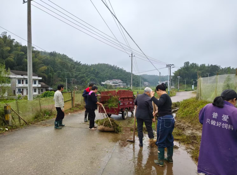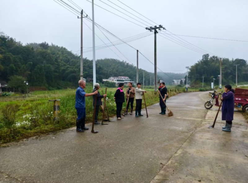 清晨,在邻长号召下,村民便自发拿起锄头、扫帚、镰刀,迅速组队分片行动。在蜿蜒的村道旁,白发老人弯腰清理沟渠杂草,中年村民合力砍伐遮挡视线的杂树,妇女们手持扫帚清扫路面落叶。雨水打湿了衣衫,却没浇灭大家的干劲。“老张,这边的杂草我来割,你去把那堆枯枝搬上车!”“李婶,桥洞下的淤泥得赶紧清,不然下雨天积水难走!”邻长在现场调度,村民们分工协作,配合默契。