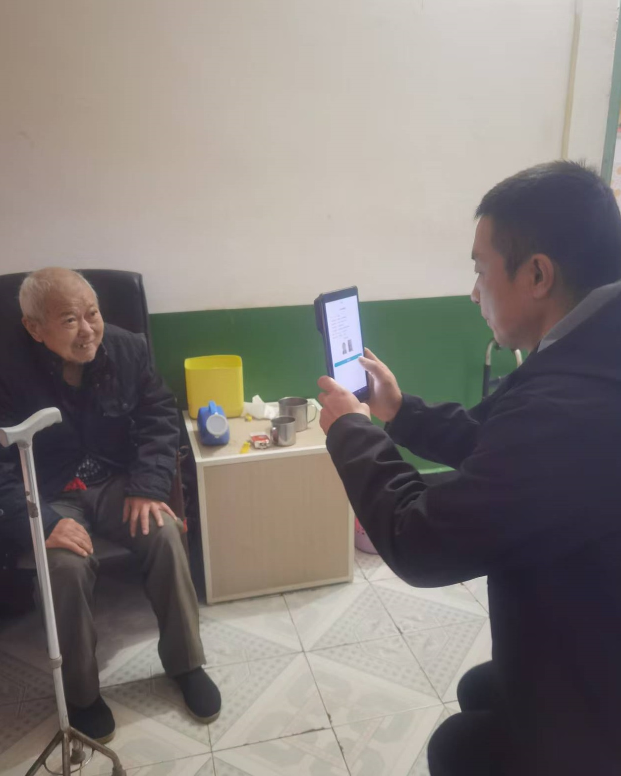 今年10月以来,桃花江镇以“精准、高效、暖心”为原则,为退役军人优抚对象年度认证,设置了“医院认证+上门认证+线上指导”三类服务模式。针对行动不便、长期住院的退役军人,镇退役军人服务站主动对接,根据需求前往病房提供专属服务,实现“足不出院”轻松认证。而对于高龄、瘫痪在床或居住偏远的特殊群体,工作人员采取“一对一”上门服务,携带设备上门采集信息、指导认证,将服务送到家。对想要进行网上认证人员,工作人员通过电话、微信群、短视频等方式,发布线上认证流程指南,实时在线解答操作疑问,帮助退役军人通过手机APP自主完成认证,节省时间成本。