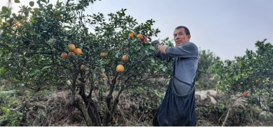 村民胡先生在采摘脐橙 胡卫红 摄