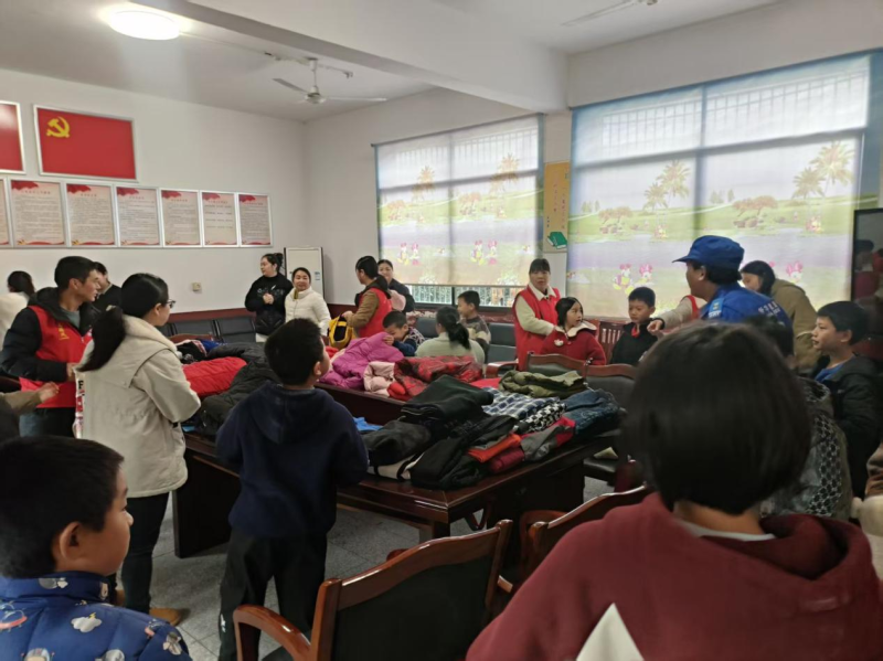 桃江蓝天义工志愿者团队在澄泉湾小学开展冬季服装捐赠