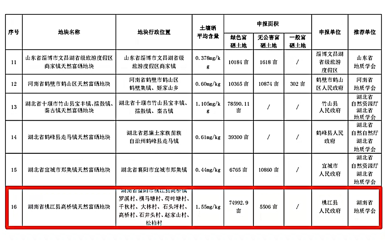近日,中国地质学会公布第五批天然富硒土地认定结果,高桥镇天然富硒地块以8万余亩的土地规模、1.55mg/kg的平均硒含量成功入选,全国同批地块硒含量最高、湖南省同类型认定面积最大,是益阳市目前唯一被国家级认定的天然富硒地块。