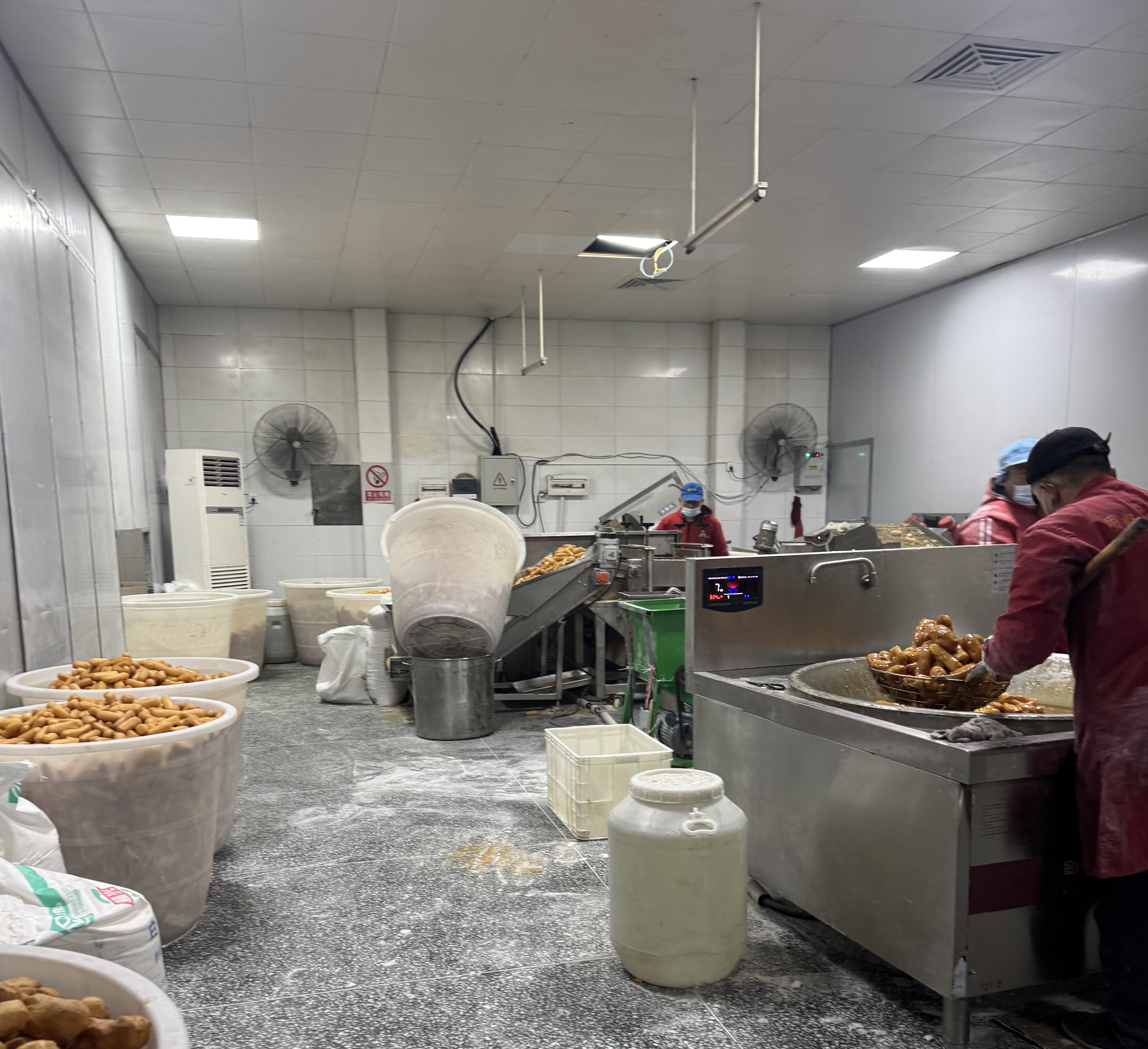 随后,调研组走进湖南易平食品有限公司生产车间,20000平方米的车间内,机器平稳运转,身着统一工作服的员工在各自岗位上,有条不紊地进行食品加工。公司主要负责生产加工雪枣、麻枣、麻花等传统特色食品的生产与加工。凭借对品质的严苛坚守与独特风味的匠心传承,其产品不仅畅销全国,近年来逐步开拓海外市场,公司扎根乡土,有效解决村附近百余人的就业问题,实现了村民“家门口增收”的朴素愿望。
