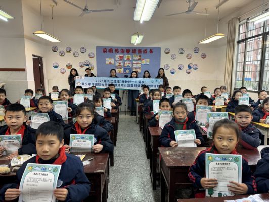 “停水了该怎么办?”“怎么保护白鹭的家园?”课堂互动环节时,宣讲员一抛出问题,孩子们迫不及待举起小手,用稚嫩的语言分享“随手关水龙头”“循环利用洗菜水”“不乱扔垃圾”“不捕捉小鱼小虾”等想法,现场气氛热烈。宣讲员还通过卡通插画、情景模拟和视频观看,讲解农业滴灌、污水处理等节水护水技术,让抽象的生态知识变得具体可感。“原来资水也是白鹭的家,我以后要当节水护鸟小卫士!”“以后不能随便踩踏、砍伐花草树木”......生态课堂接近尾声,孩子们一句句质朴的话语,连同《生态小卫士倡议书》上歪扭却认真的字迹,都化作了守护家乡绿水青山的纯真承诺。