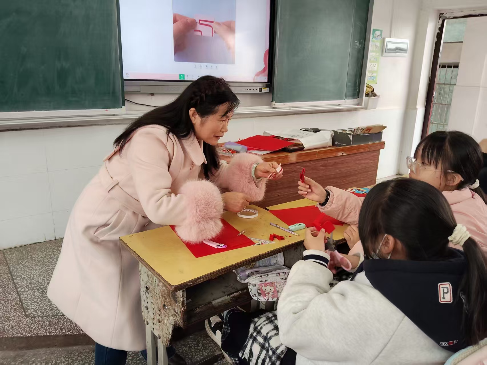 龙叶红在与学生进行非遗剪纸教学 苏乐良 摄